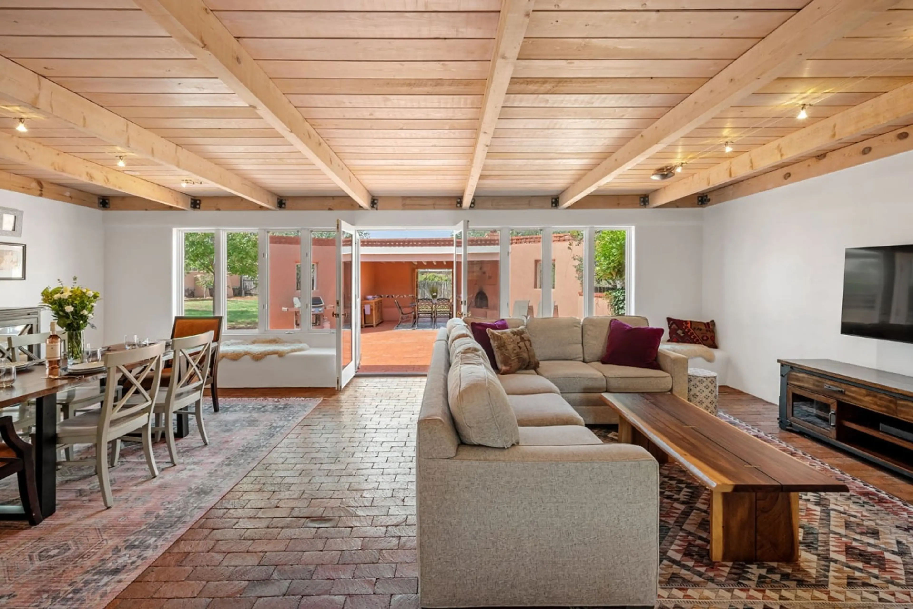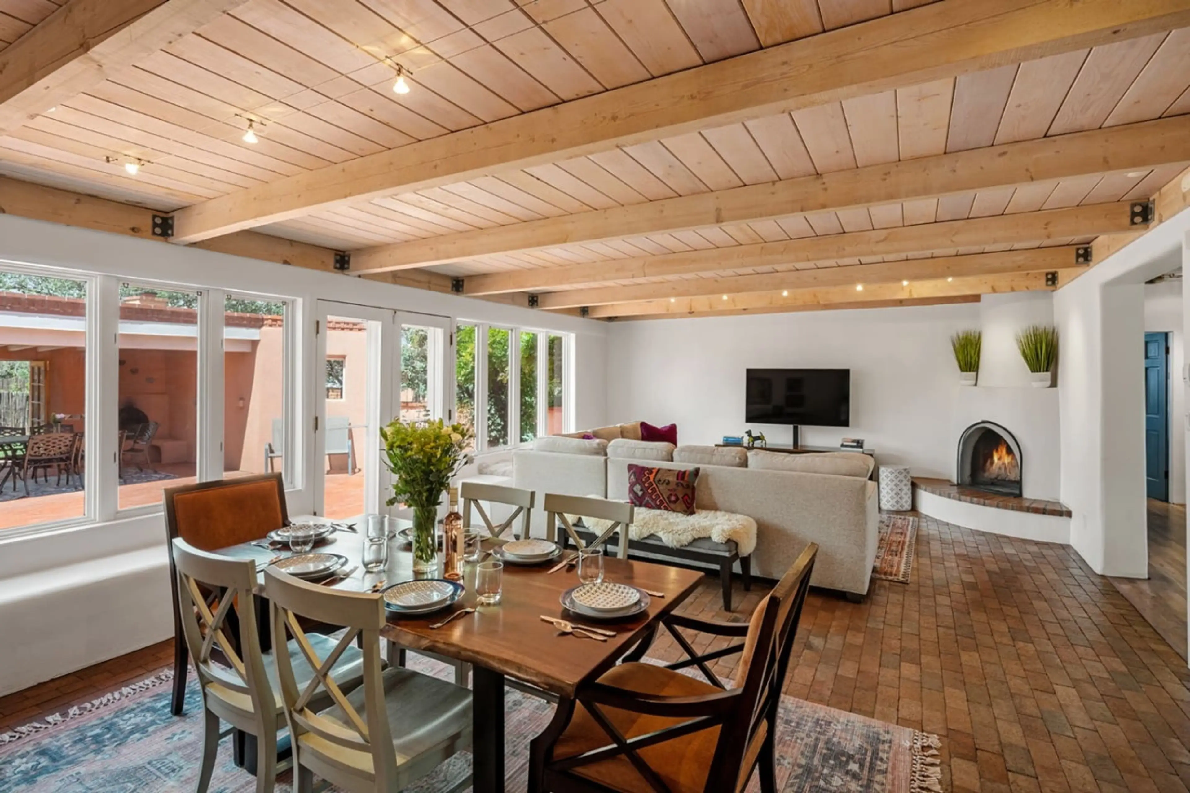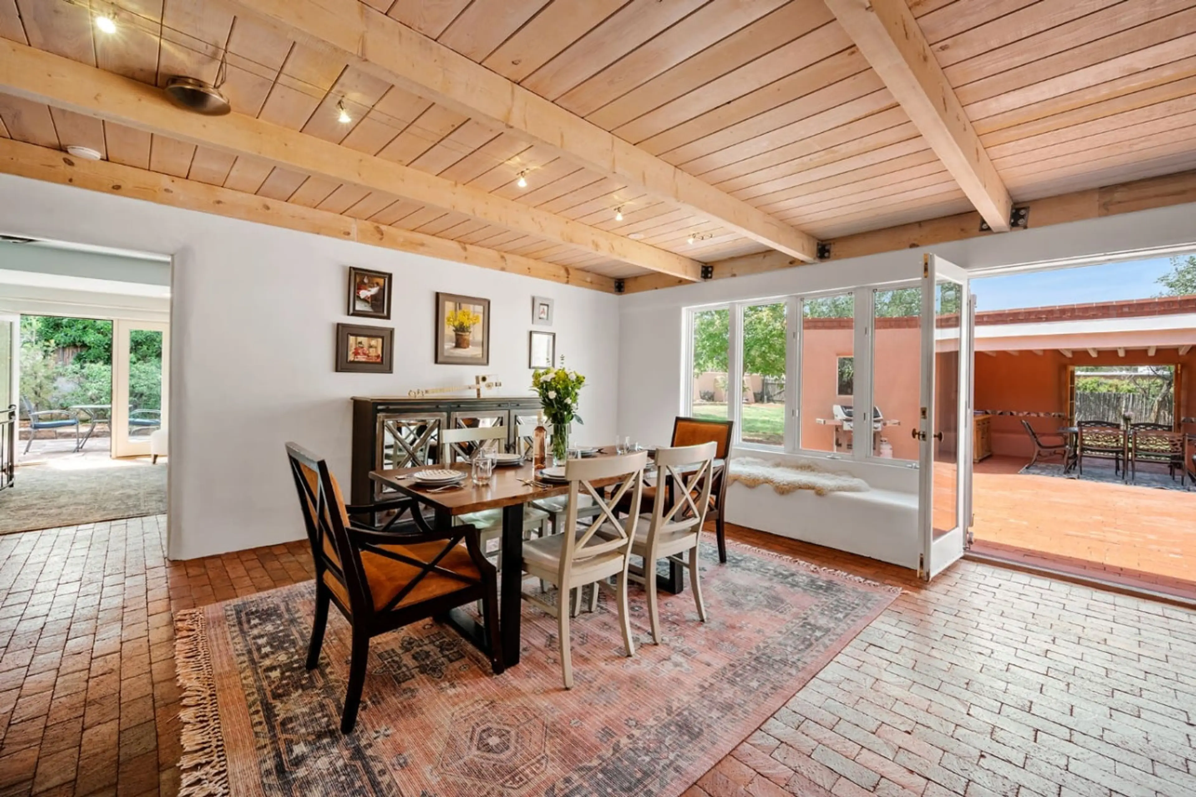 Your family or group will be close to everything in Santa Fe when you stay at this centrally-located place. Nestled along the historic Old Santa Fe Trail, this exceptional three-bedroom, two-bath home offers an unparalleled blend of high-end luxury, authentic Southwestern charm, and an elevated mod...