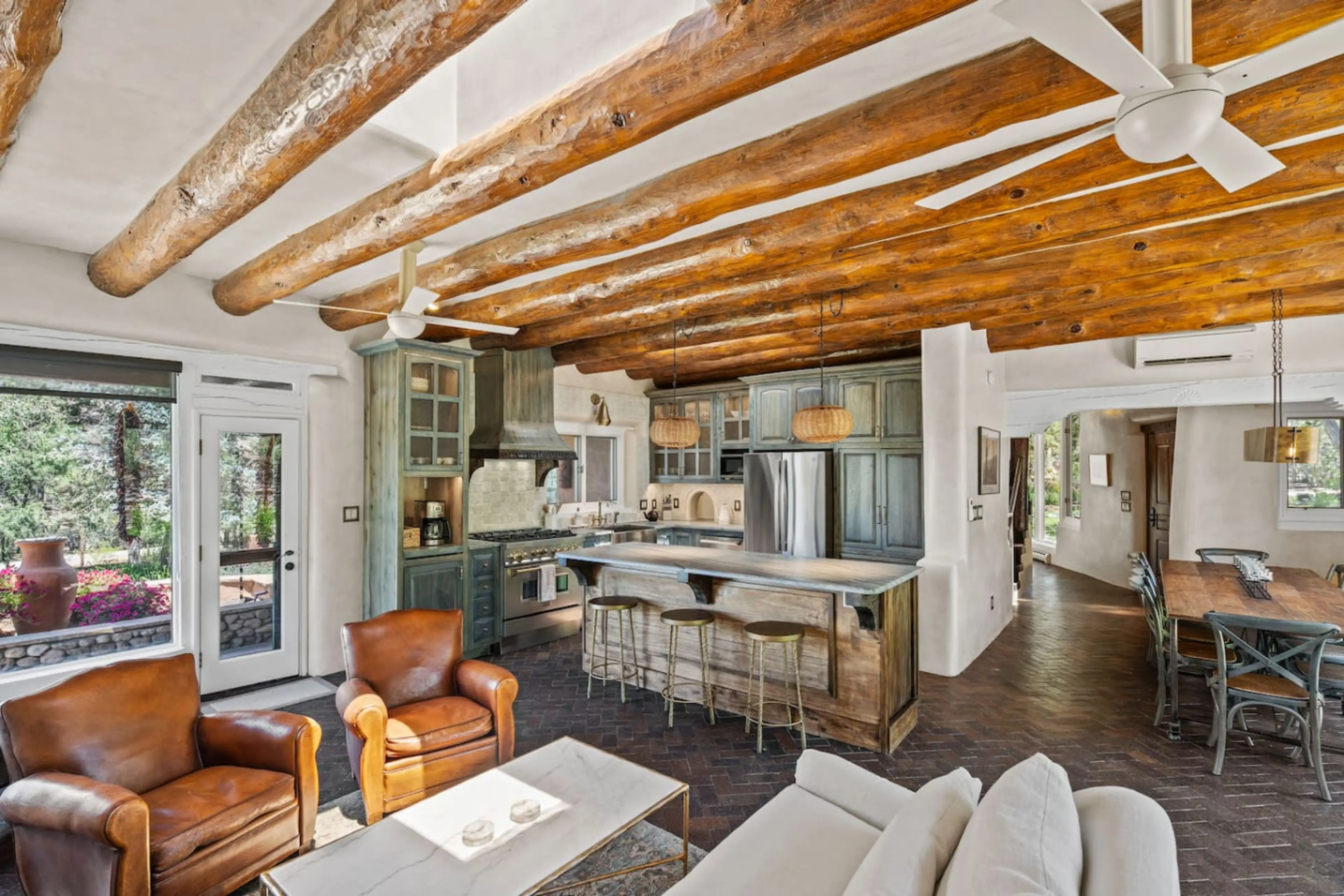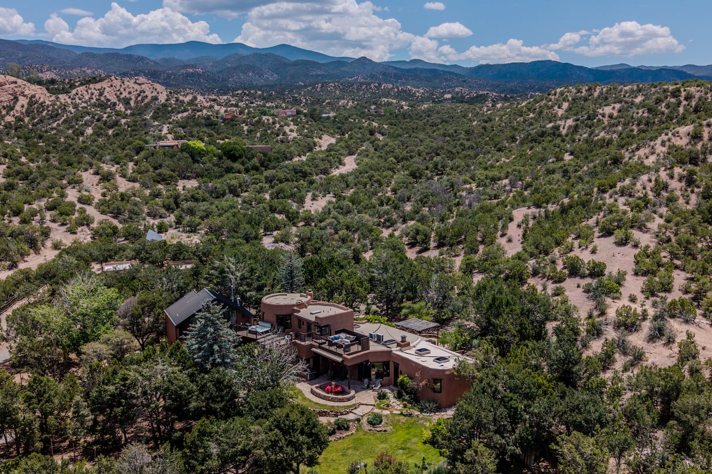 This serene, green oasis tucked into the hills of Tesuque off a private road combines rustic luxury and tranquility. Beautiful gardens welcome you into the compound, your shoulders drop, and you breathe easier. Enjoy uninterrupted views across the desert to the Jemez Mountains including spectacular...